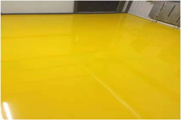 5.刮封閉層:將環(huán)氧自流平料桶甲乙組分打開并混合攪拌,配比為1:4。靜置5分鐘后倒在已經(jīng)干燥的膩?zhàn)訉由,用批刀批刮。批刮時(shí)動(dòng)作,速度,用力和批刮膩?zhàn)訉右粯樱竽ㄆ侥ü,無刀痕和接縫痕,自然固化12小時(shí)。此時(shí)地坪嚴(yán)禁上人,關(guān)閉所有門窗,嚴(yán)禁任何砂料和灰塵進(jìn)入。