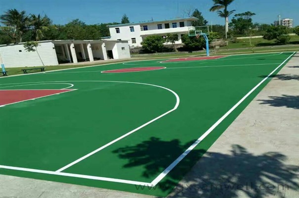 2、丙烯酸球場材料——該產(chǎn)品采用優(yōu)質(zhì)的丙烯酸面層涂料加一定比例的石英砂和水配比而成,屬于水性原料。完工后,面層厚度2mm左右。
