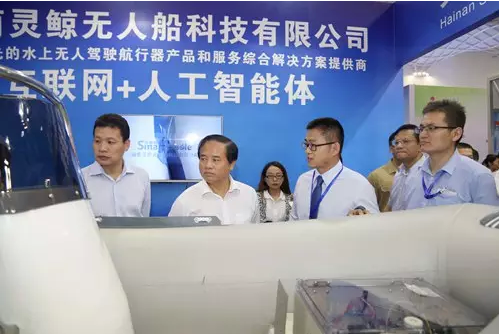 ▲海南省委副書記、省長劉賜貴一行蒞臨海南靈鯨無人船科技有限公司展位