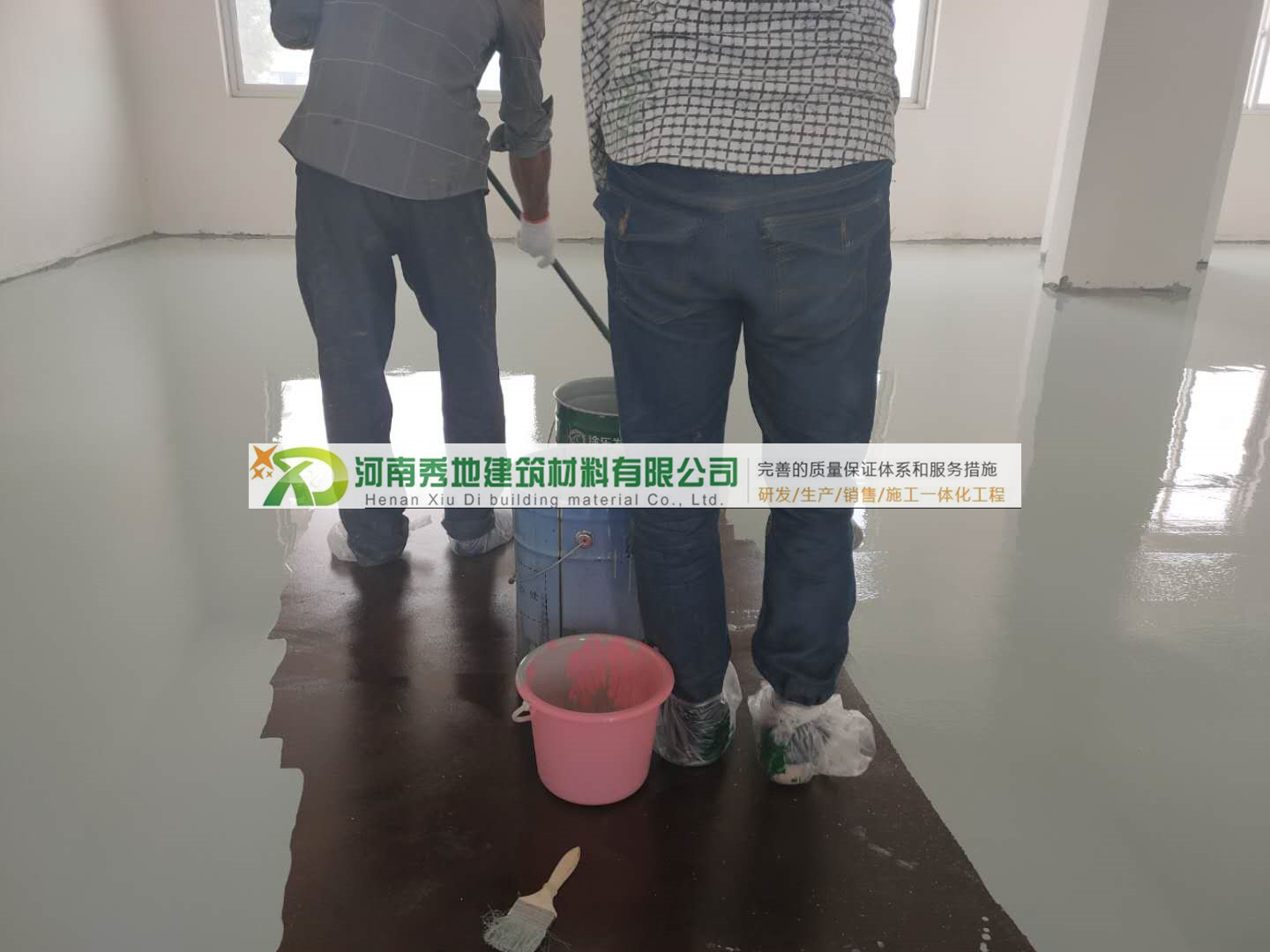 底漆按廠家規(guī)定配比,用電子稱計量好,混合之后充分攪拌均勻后,用刮涂或者滾涂的方式施工。底漆完全干燥后方可進行下一工序施工(干燥時間和溫度、濕度關系大,溫度25度左右24小時后可進行下一遍施工)。目的是增強地面和面層的附著力。