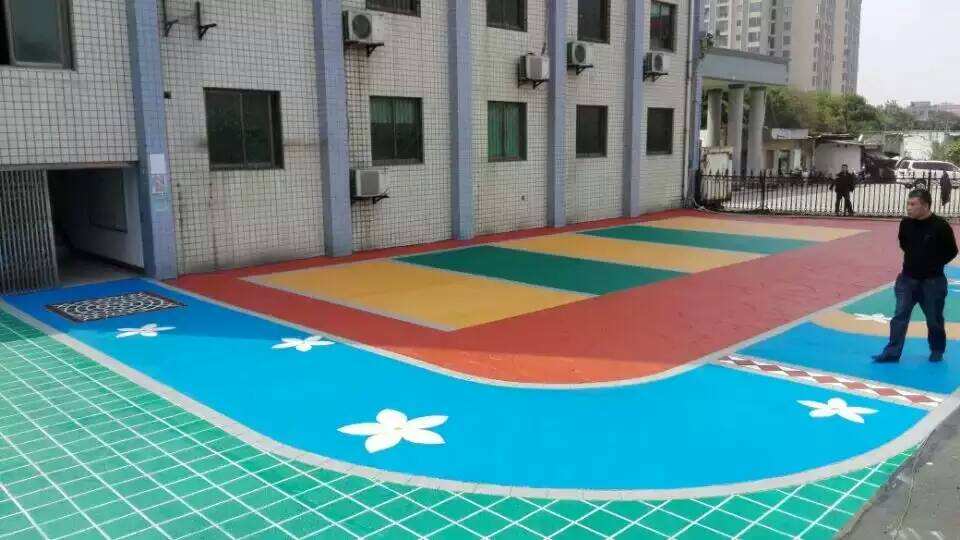2.彩砂地坪施工方法:將材料按配合比充分?jǐn)嚢,使用刮涂工藝反?fù)刮涂。使環(huán)氧高滲透底漆封閉并滲透到混凝土基層,確保彩砂地坪與混凝土結(jié)合,提高附著力的持久性。