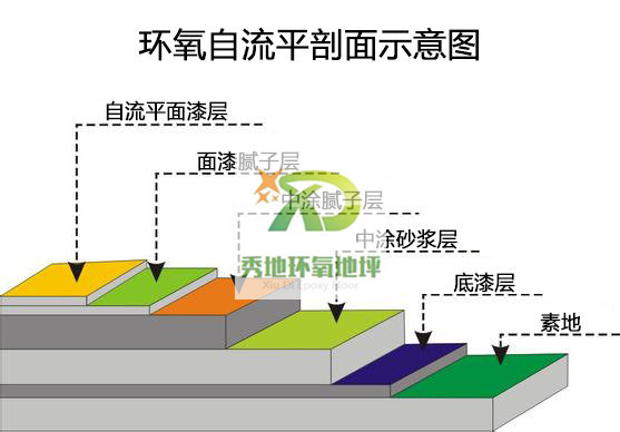 4、面涂層,涂抹色漆,自流平環(huán)氧面漆均勻慢涂。