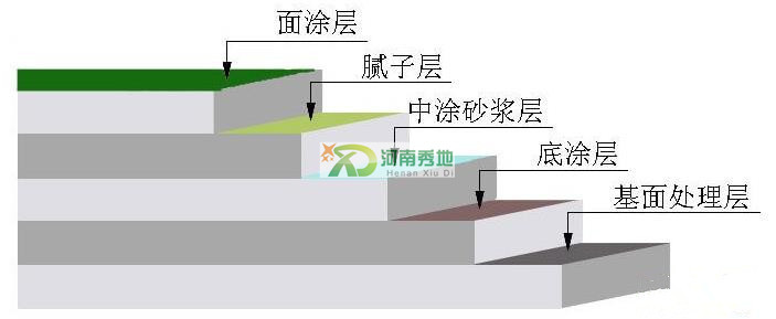 2.環(huán)氧底漆層施工:涂刷高效底漆一道,涂量要足,使用量是0.2kg/㎡,在處理清潔、平整的素地表面,采用環(huán)氧樹脂底涂材料封閉批涂一遍,環(huán)氧樹脂底涂材料有很強的滲透性,能滲入基層內部,增強涂層和基層的附著力,其涂布必須連續(xù),不得間斷,涂布量以表面剛好飽和為準,附著強度:要求在25kgf/cm2以上。