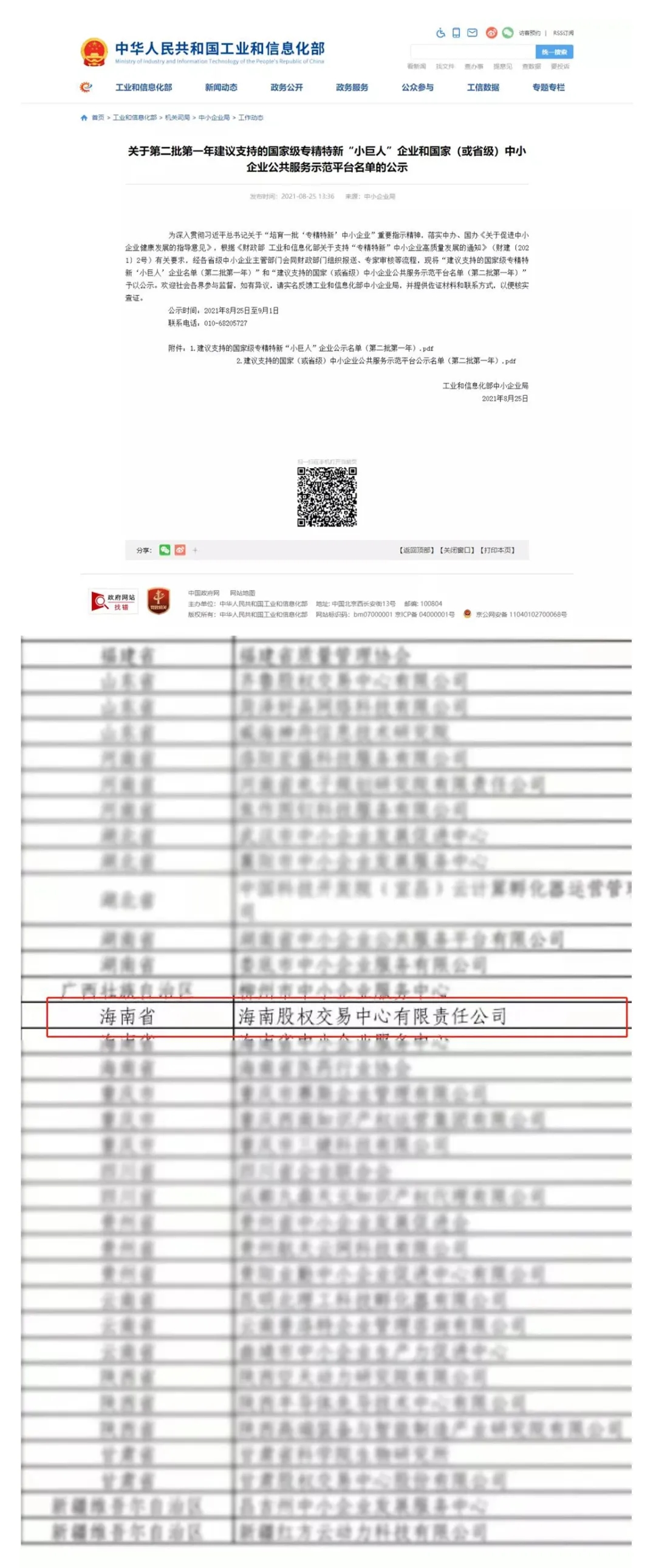 今年6月,在省金融局、海南證監(jiān)局的支持下,海南股交聯(lián)合省工信廳創(chuàng)新設(shè)立“專精特新板”,為我省“專精特新”中小企業(yè)提供區(qū)域性股權(quán)市場服務(wù)的專屬板塊,借助資本市場的力量,為企業(yè)創(chuàng)新發(fā)展提供資本服務(wù)與智力支持。8月,海南股交入選工信部第二批“建議支持的國家(或省級)中小企業(yè)公共服務(wù)示范平臺”名單,服務(wù)“專精特新”中小企業(yè)的能力獲得了省工信廳及工信部的認可。