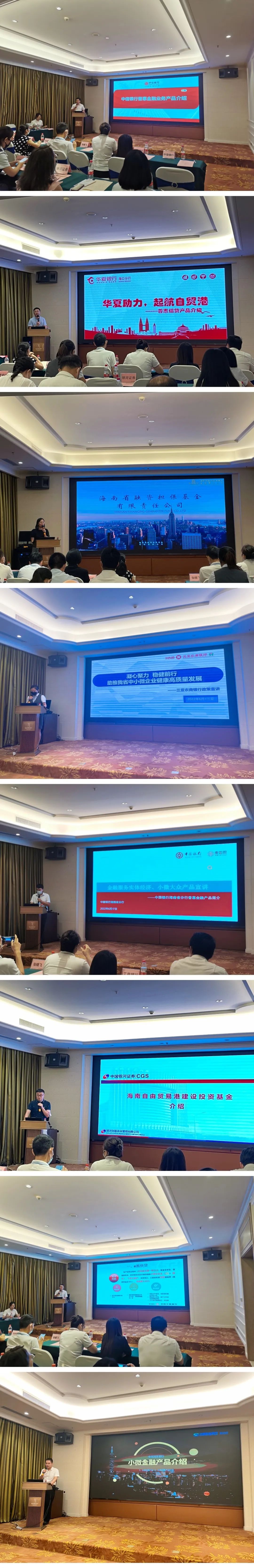 活動(dòng)邀請(qǐng)了中國(guó)銀行、工商銀行、中信銀行、民生銀行、華夏銀行、三亞農(nóng)商行、省融資擔(dān)保、銀河證券進(jìn)行惠企政策及金融產(chǎn)品宣貫。針對(duì)目前中小企業(yè)普遍存在抵押、擔(dān)保物不足,信息不對(duì)稱,融資途徑單一,企業(yè)的發(fā)展后勁不足等現(xiàn)狀問題,8家參會(huì)金融機(jī)構(gòu)相關(guān)業(yè)務(wù)負(fù)責(zé)人分別介紹了各自普惠金融信貸產(chǎn)品和為企業(yè)提供的優(yōu)質(zhì)服務(wù)經(jīng)驗(yàn),分享了企業(yè)融資案例。