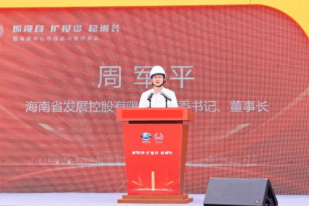 ▲海南控股黨委書記、董事長周軍平致辭。