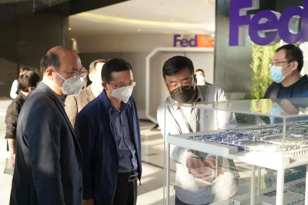 ▲圖:周軍平一行在浦東機(jī)場PACTL貨站參觀沙盤模型