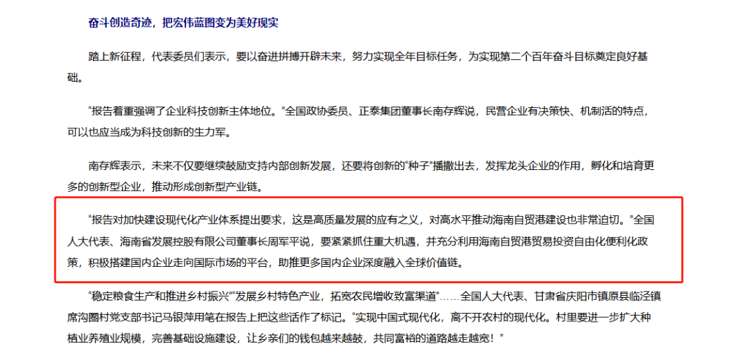 “報告對加快建設(shè)現(xiàn)代化產(chǎn)業(yè)體系提出要求,這是高質(zhì)量發(fā)展的應(yīng)有之義,對高水平推動海南自貿(mào)港建設(shè)也非常迫切?!比珖舜蟠?、海南省發(fā)展控股有限公司董事長周軍平說,要緊緊抓住重大機遇,并充分利用海南自貿(mào)港貿(mào)易投資自由化便利化政策,積極搭建國內(nèi)企業(yè)走向國際市場的平臺,助推更多國內(nèi)企業(yè)深度融入全球價值鏈。