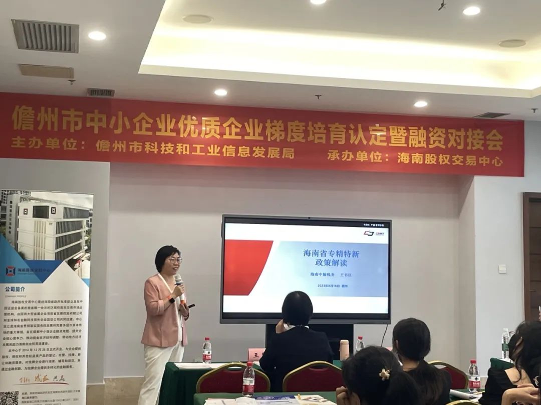 上午的活動在儋州市洋浦經(jīng)濟(jì)開發(fā)區(qū)佰麗海景酒店舉辦?;顒邮紫扔珊D现泻布t日誠稅務(wù)師事務(wù)所創(chuàng)始人王書紅作“專精特新”企業(yè)政策解讀,幫助企業(yè)全面深入了解優(yōu)質(zhì)企業(yè)梯度培訓(xùn)政策,并從企業(yè)財(cái)務(wù)稅務(wù)處理和財(cái)稅政策應(yīng)用方面著重說明了企業(yè)應(yīng)如何不斷提高自身管理水平,通過規(guī)范發(fā)展拓寬融資渠道,補(bǔ)短板、強(qiáng)弱項(xiàng),走“專精特新”發(fā)展道路。