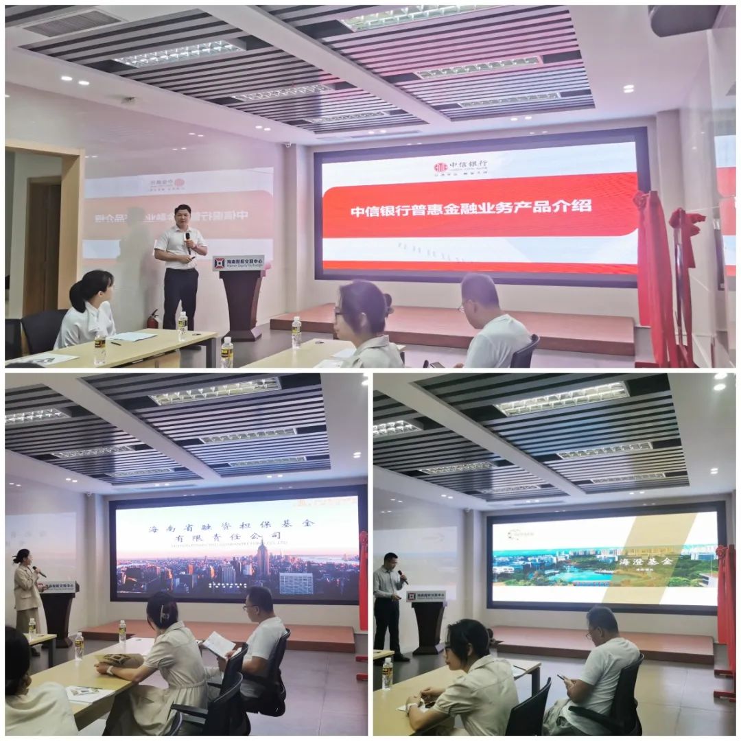 會上,中信銀行、澄邁發(fā)展基金及省融擔基金等多家金融機構(gòu)就各自金融信貸政策和信貸產(chǎn)品進行宣介。