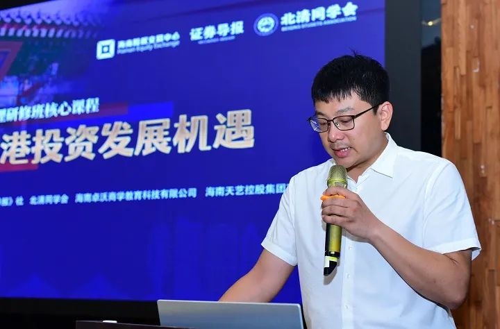 中國科學(xué)院博士、海南股交專家沈宇庭現(xiàn)場作《世界的海南-全球趨勢機遇》《中國的海南-企業(yè)投資機遇》主題授課,從全球經(jīng)濟形勢、海南自由貿(mào)易港政策、海南自由貿(mào)易港投資機遇等多個方面,深入淺出、詼諧幽默地向?qū)W員講述新形勢下海南自由貿(mào)易港的投資發(fā)展新機遇,精彩的分享贏得現(xiàn)場陣陣掌聲。