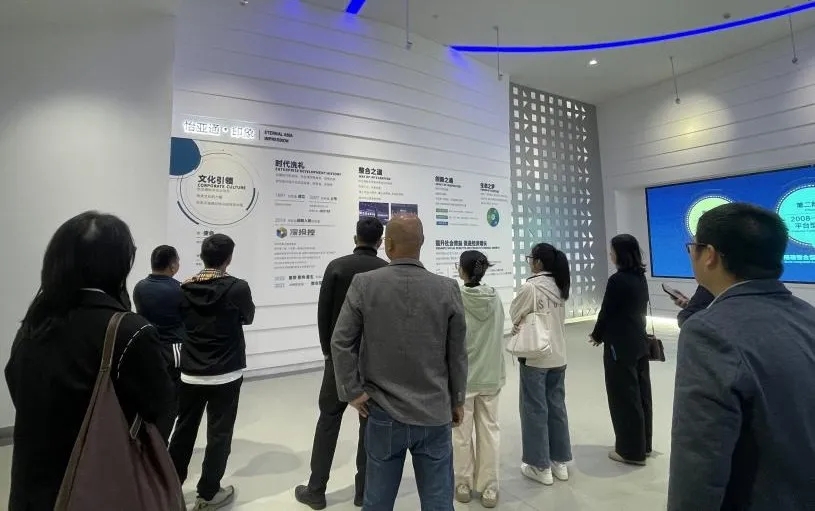 隨后,企業(yè)代表一行來到深圳市怡亞通供應(yīng)鏈股份有限公司總部參觀交流。怡亞通是中國首家上市供應(yīng)鏈公司,聚焦十大核心產(chǎn)業(yè),打造供應(yīng)鏈綜合服務(wù)平臺。在講解員的仔細(xì)介紹與智能化投屏展示中,企業(yè)代表參觀了怡亞通數(shù)字化展廳,詳細(xì)了解了深圳市怡亞通的歷史發(fā)展歷程及怡亞通在供應(yīng)鏈管理、數(shù)字化服務(wù)及全域營銷等領(lǐng)域的創(chuàng)新成就。座談會上,雙方圍繞商品分銷渠道、品牌營銷孵化、品牌數(shù)智化營銷和門店數(shù)字化等方面進(jìn)行了探討。