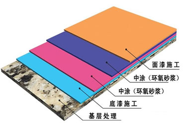4、環(huán)氧色漆層:用環(huán)氧色漆滾涂;