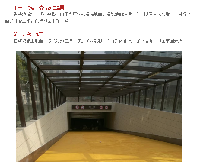 地下車庫出入口防滑坡道是車流量比較大的場所,表面要進行防滑處理,車庫進出口有一定的斜坡,為了車輛的安全行駛,一般使用河南秀地?zé)o震動防滑坡道材料施工;無震動防滑坡道材料采用水性樹脂添加無機坡道骨料,按照一定的配比進行攪拌批刮,顏色一般分為黃綠色或者黃灰。防滑坡道材料不僅可以用于車庫出入口的防滑,還可以用于路面的防滑和路面斜坡的防滑處理,高強耐磨材料,應(yīng)用范圍比較廣。