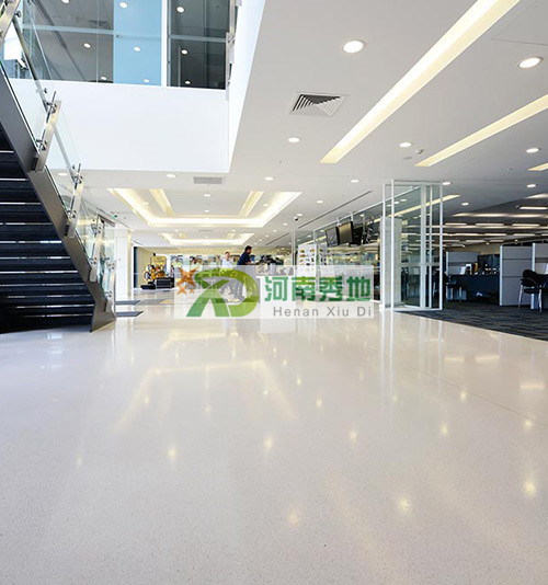 環(huán)氧地坪是一種高強(qiáng)度、耐磨損、美觀的地板,具有無接縫、質(zhì)地堅(jiān)實(shí)、耐藥品性佳、防腐、防霉、防水、防塵、保養(yǎng)方便、維護(hù)費(fèi)用低廉等優(yōu)點(diǎn)、止滑以及防靜電、電磁波等特性,顏色亮麗多樣,清潔容易。它采用一次性涂覆工藝,不管有多大的面積,都不存在連接縫,而且還是一種無灰塵材料,具有附著力強(qiáng),耐磨擦,硬度強(qiáng)等特點(diǎn)。